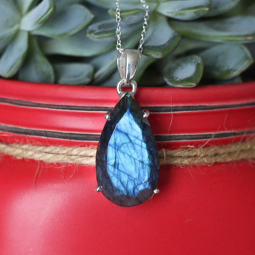 Gorgeous Faceted Teardrop Labradorite Pendant