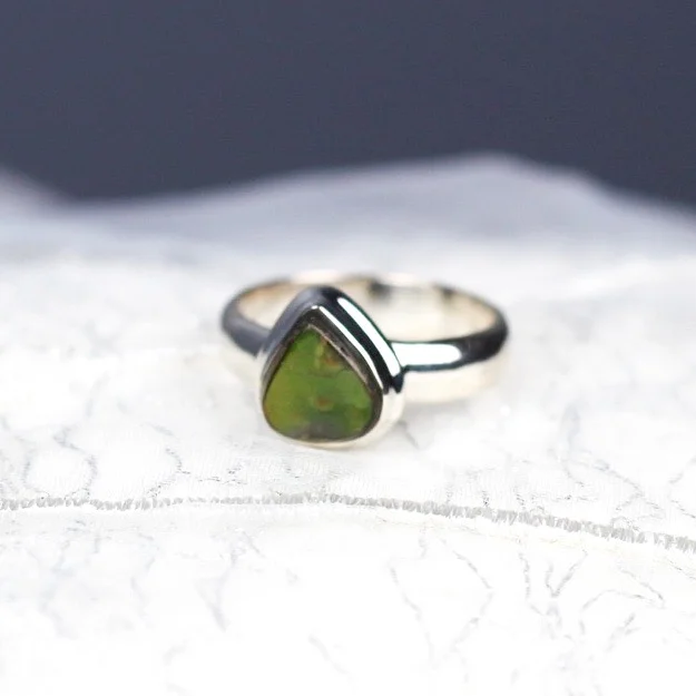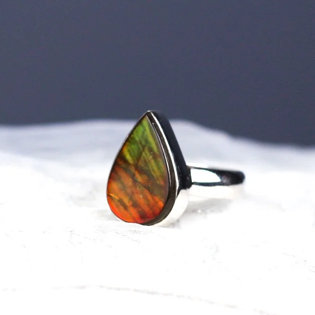 Delicate Teardrop Ammolite Ring Size 6